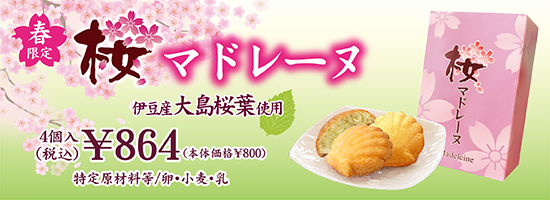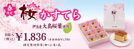 2月1日より「撰菓 桜カステラ」、「個装 桜かすてら」、「桜マドレーヌ」を販売いたします。(一部店舗を除く)終了いたしました。 |